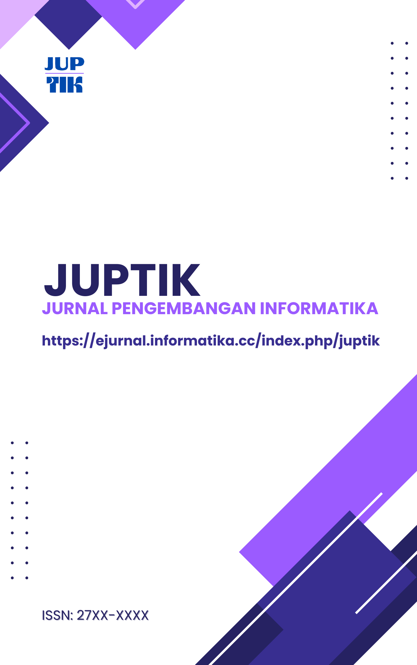 Jurnal Pengembangan Informatika (JUPTIK) diterbitkan oleh Informatika. Kami mengundang peneliti, praktisi, dan mahasiswa untuk menulis perkembangan ilmiah di bidang yang terkait dengan Sistem Informasi dan Teknik Informatika. JUPTIK memiliki E-ISSN: 27XX-XXXX (Media Online) dengan DOI Prefix: XX.XXXXX.